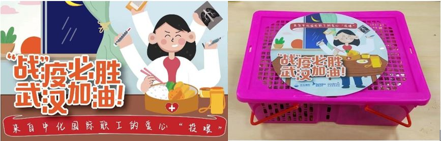 为支援武汉前线医护人员, 2月1日,中化国际党群工作部、办公室与工会向全体本部员工发出自愿捐款倡议,筹集善款为武汉疫情救治定点医院“武汉大学人民医院”ICU病房医护人员提供健康丰富的爱心餐。倡议发出后,党员干部积极带头,员工们踊跃捐款,短短3天时间筹到23个职能部门及下属单位535位员工捐善款237,875元。送餐将于2月8日正式开始,每天500份48元标准的爱心晚餐和蔬菜水果篮,供给前线医护人员。