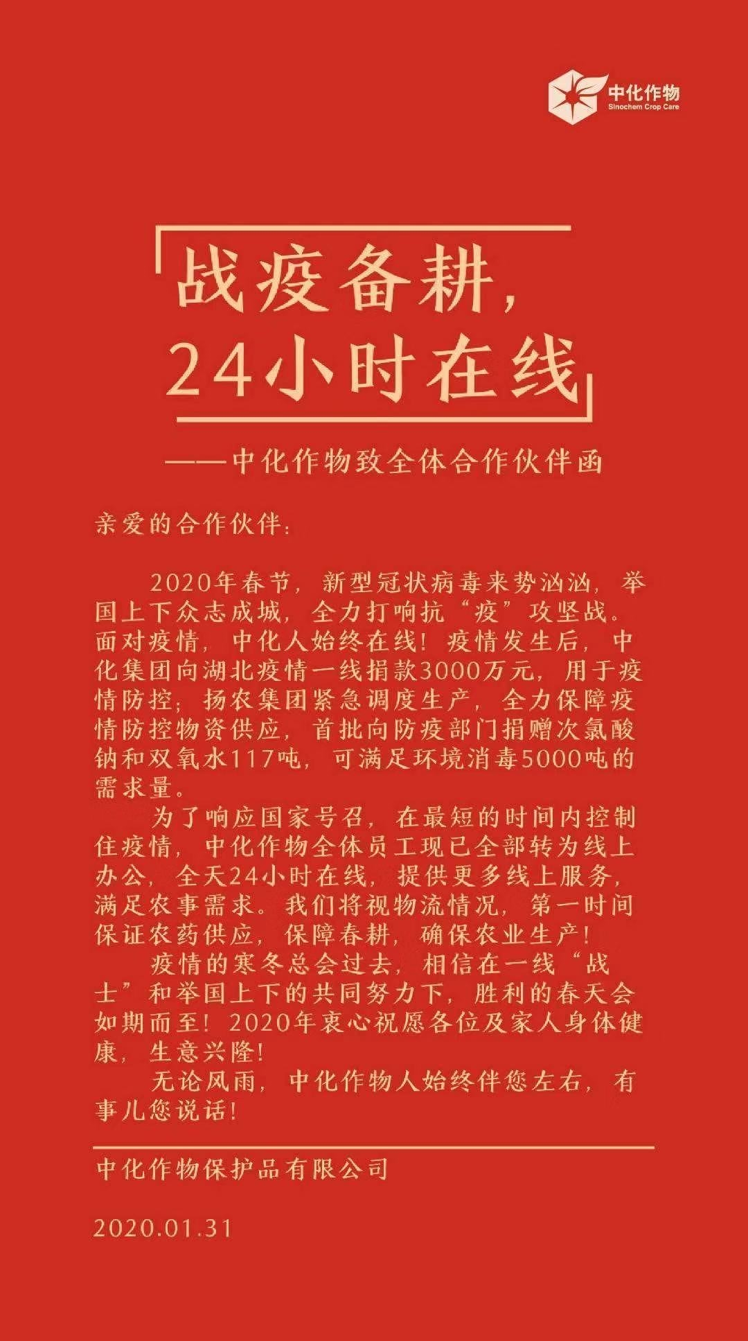 中化作物从1月31日起紧急开通24小时线上服务,第一时间满足农事需求,保证农药供应、保障春耕、确保疫情期间的农业稳定生产。
